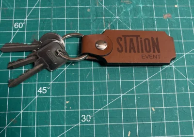 Chaque participant choisit la couleur de son cuir, les œillets parmi plusieurs finitions, puis assiste à la fabrication artisanale de son porte-clé sous ses yeux. En quelques minutes, le cuir est découpé, assemblé, et gravé avec un prénom, un mot-clé ou le nom de votre événement. Un souvenir unique, élégant, et 100 % utile.